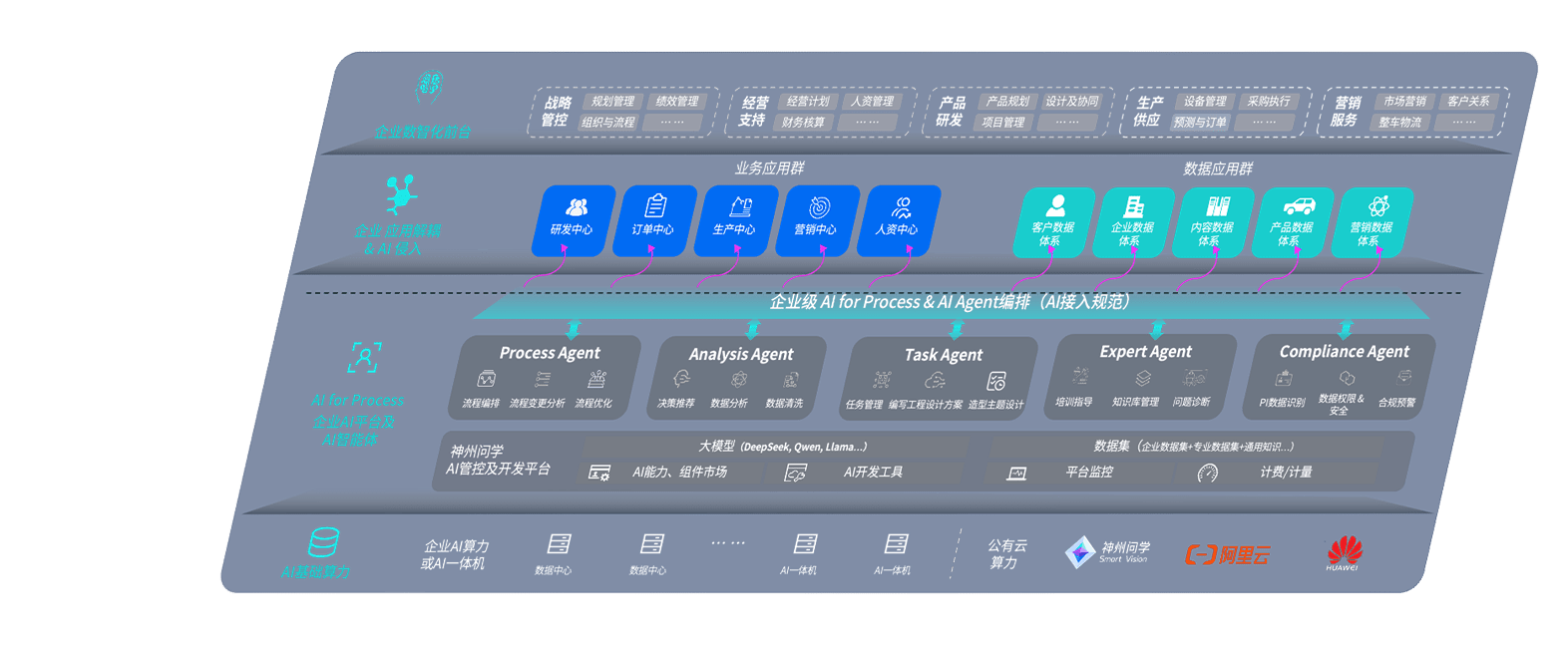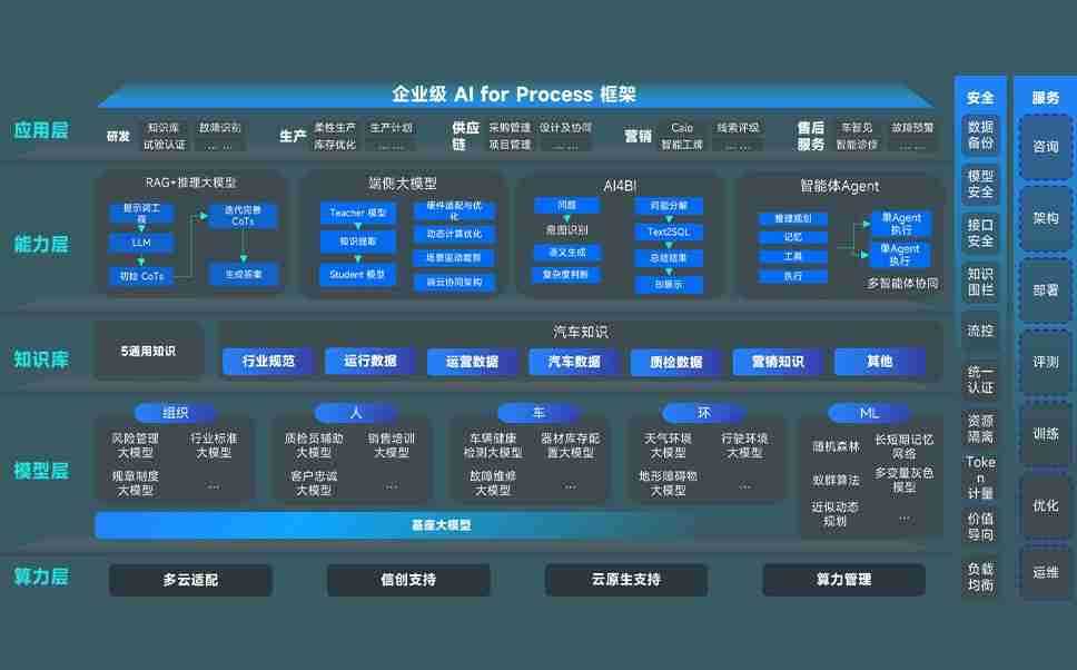 端到端的一站式AI工作空间深度融合了从企业战略规划到日常经营的全流程业务板块,,,定向解决车企内部领域多、、部门多、、、链条长、、、场景碎片化等难题,,支持车企快速构建以AI为核心的生产力写作体系,,,实现任务执行与AI能力的无缝集成与交互